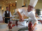 “Top of the Mark” chef prepares his carefully constructed food displays – both artful and delicious! |